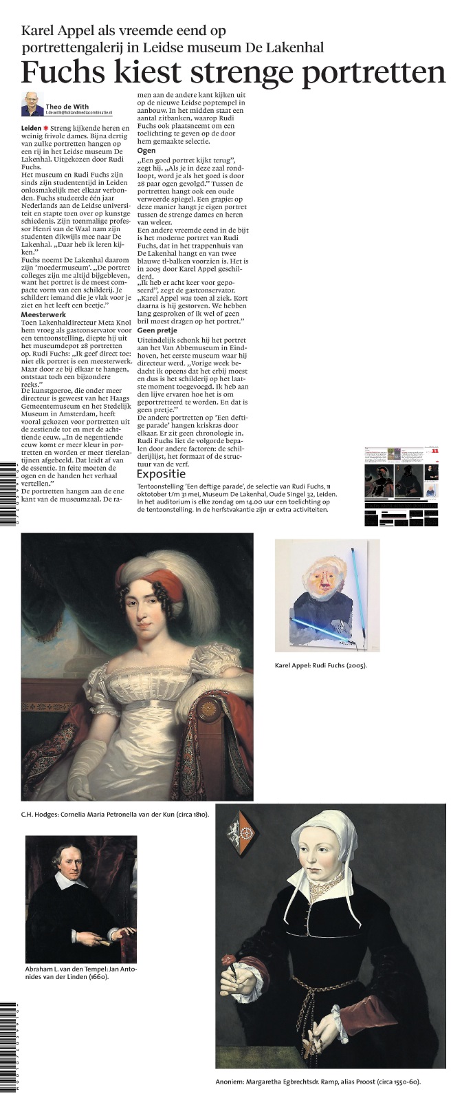 Op de eerste dag van de tentoonstelling schreef het Leidsch Dagblad over de opvallende toevoeging van het portret dat Karel Appel in 2005 maakte van Rudi Fuchs.