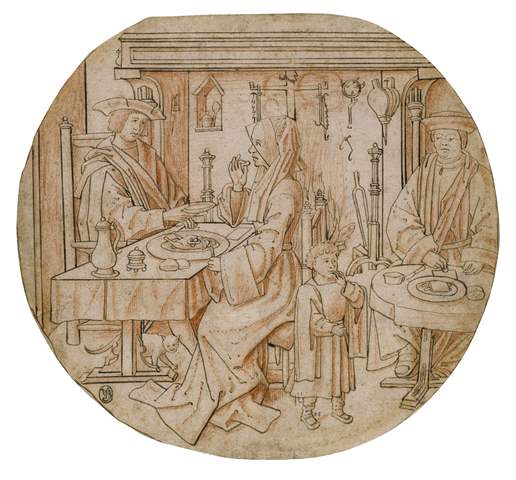 Het carton maakte onderdeel uit van een reeks ruiten rondom het thema van ‘rijke kinderen, arme ouders’. Een welgesteld echtpaar deelt hun rijk gevulde eettafel niet met een naast gezeten arme vader. De voorstelling lijkt te waarschuwen voor de ondankbaarheid die kinderen naar hun ouders toe kunnen ontwikkelen. De remedie: een gedegen opvoeding.